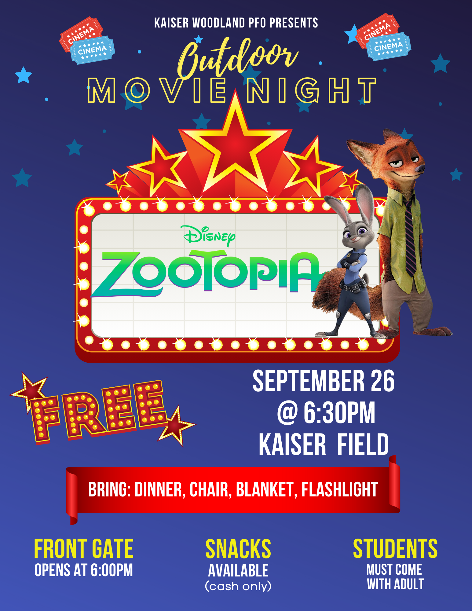 Calling all Knights and Dragons to the Kaiser field for Outdoor Movie Night - showing Zootopia!